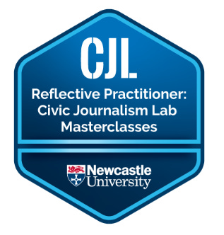 To reward you for attending our masterclasses, we’re excited to be able to offer you the opportunity to earn a digital “Open Badge” from the Civic Journalism Lab at Newcastle University that you can display on your LinkedIn profile. To find out more about our blue, silver and gold badges, visit this page.