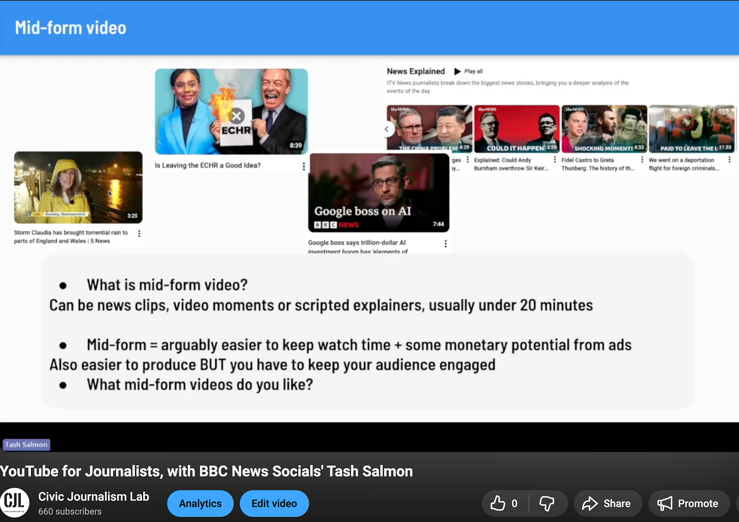 If you missed our Civic Journalism Lab masterclass on how journalists are using YouTube to tell their stories – and how we can do the same – you can watch an edited version of the masterclass by Tash Salmon of BBC News Socials on our YouTube channel here.